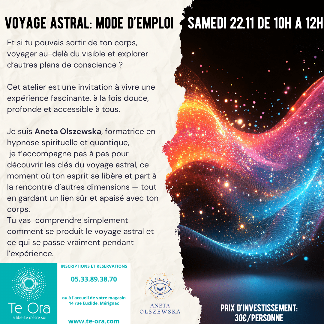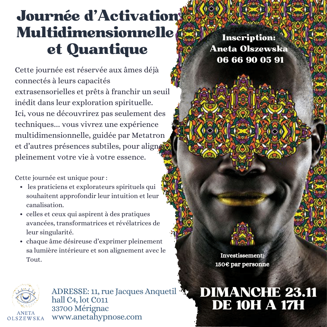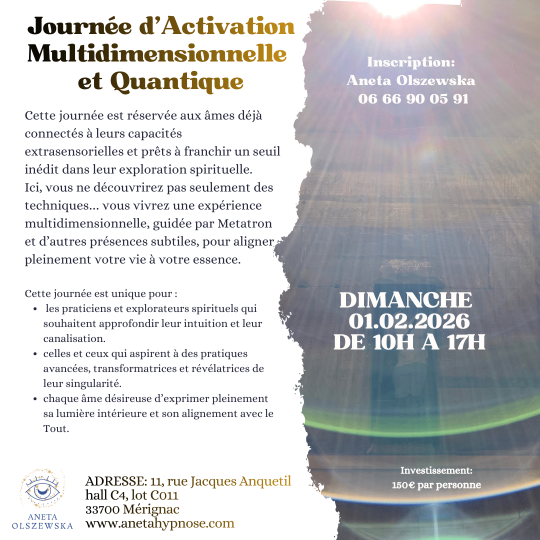 Pourquoi ces sujets ? Parce que plus j’ouvre le champ de conscience, plus j’affine mon écoute et ressens ce qui a besoin d’être libéré en vous. C’est ainsi que naissent ces expériences uniques, alignées avec vos besoins et l’énergie du moment.