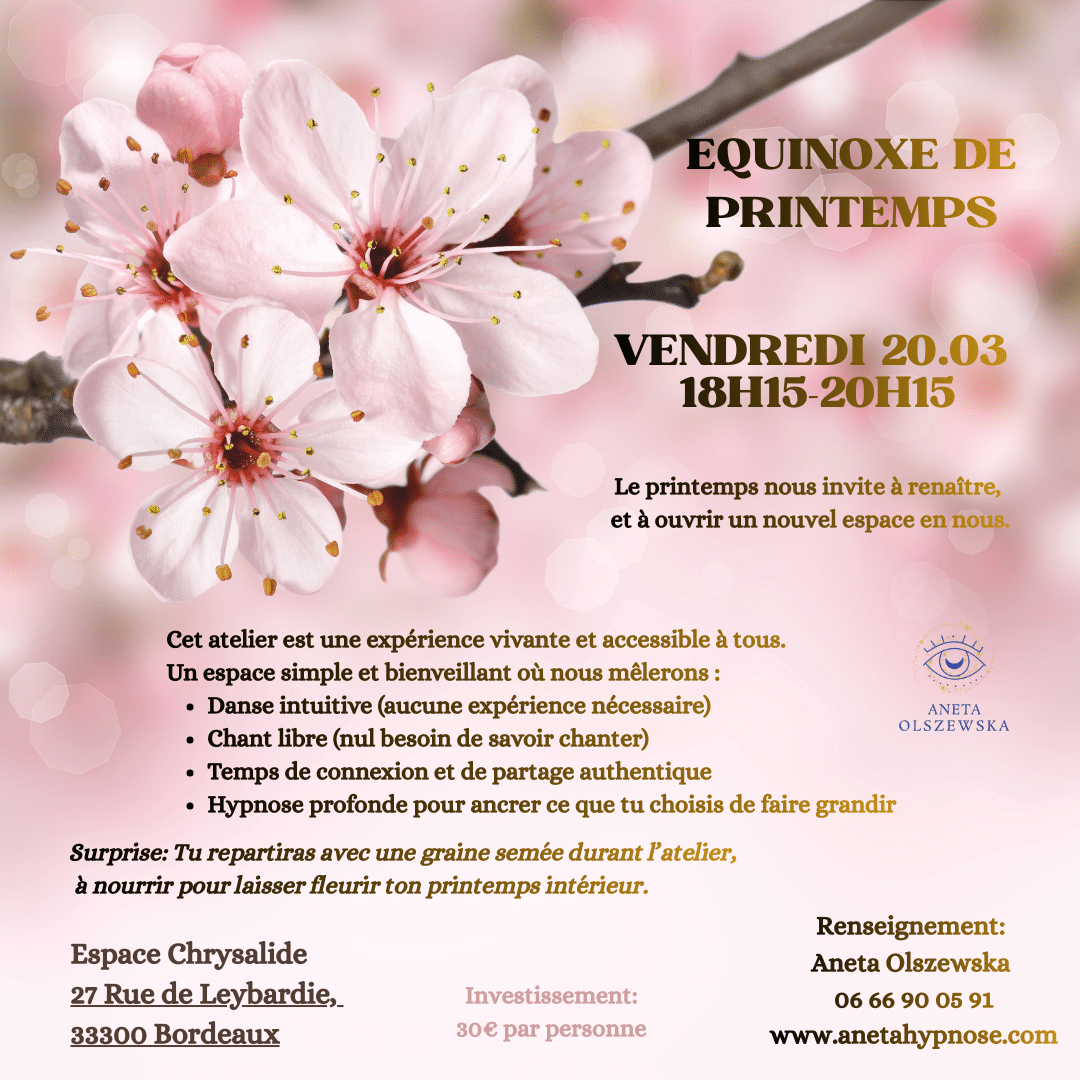 Chaque semaine, je vous invite à un voyage unique au cœur de votre être à travers des ateliers variés et profonds, conçus pour éveiller votre conscience et vous reconnecter à votre essence.